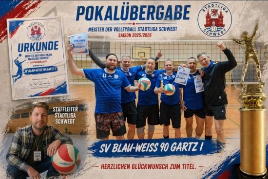 Als Meister der Volleyball Stadtliga Schwedt der Saison 2025/2026 durfte sich das Team heute über den Pokal, die Meisterurkunden und natürlich auch ein kleines Bierchen freuen.