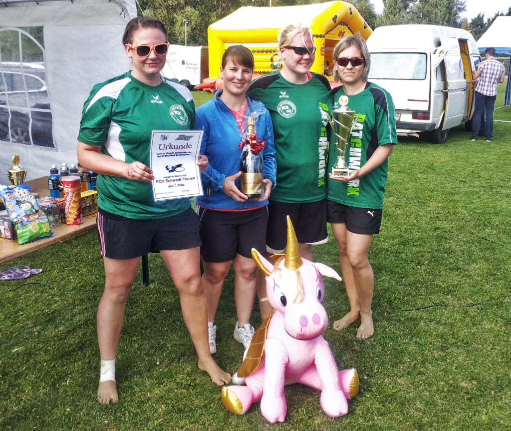 Im Finale setzte sich nach einem umkämpften und denkbar knappen ersten Satz (20:19) für Criewen letztendlich das Team PCK durch, das den zweiten Satz relativ deutlich mit 20:12 für sich entscheiden konnte und somit den Siegerpokal in Empfang nehmen konnte!