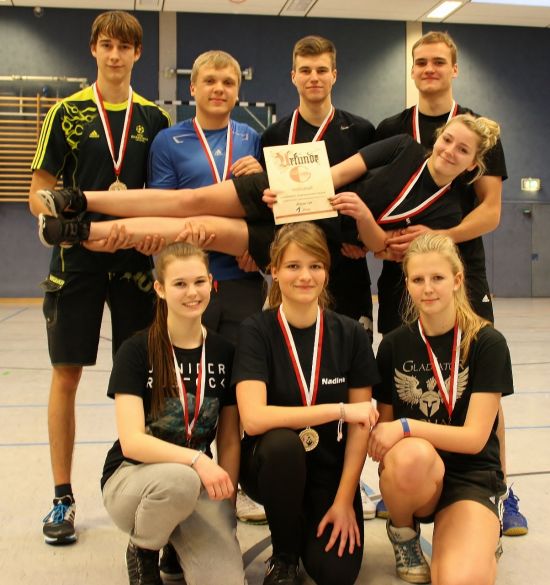 Traditionell wurde das Jahr am Schwedter Gauß Gymnasium mit einem Volleyballturnier verabschiedet. Am vorletzten Schultag des Jahres 2014 trafen sich die Schüler der zehnten, elften und zwölften Klasse zum Volleyballturnier in der Sporthalle „Neue Zeit“. Bevor es in den Zwischenrunden zum Aufeinandertreffen der verschiedenen Jahrgänge kam wurden in den jeweiligen Klassenstufen 10,11,12 die Plätz 1-3 ausgespielt. Die Chance das eine zehnte Klasse den Thron des Schulmeisters im Volleyball besteigt war in diesem Jahr groß wie nie, bislang gelang dies noch nicht. Die Klasse 10b gespickt mit einer guten Mischung talentierter Jungen und spielerfahrener Mädels vom TSV Blau-Weiß 65, kamen durchaus für den Sieg in Frage. Bereits im finalen Spiel der Zwischenrundengruppe 1 kam es zum Duell mit der hoch favorisierten Klasse 12c, dem Vizemeister des Jahres 2013. Beide Teams gewannen je einen Satz, der Tiebreak musste über den Finaleinzug entscheiden. Beim Stande von 14:12 vergaben die Zehntklässler zwei Matchbälle und unterlagen schließlich mit 14:16. Der Jubel der Abiturienten über den Einzug ins Finale war riesig, die Youngster zogen mit hängenden Köpfen aus der Halle. Als zweitplatziertes Team der Zwischenrundengruppe 1 unterlagen die 10b dann schließlich noch dem Zweiten der Gruppe 2 der 12b und mussten sich am Ende nur mit Platz vier begnügen. Die Klasse 12b spielte sich, angefeuert von ihren zahlreichen Fans, in einen Rausch und holten doch überraschend Bronze. Das Finale um den Titel 2014 gewann im letzten Spiel des Tages die Klasse 12c mit 2:0 Sätzen gegen die Klasse 11b. Abseits der Finalspiele wurde auch um die „Goldene Ananas“ des neunten Platzes gekämpft, keiner wollte sie wirklich gewinnen, der Klasse 10c gelang dies schließlich. In der Vorrunde knöpfte die 10c der Klasse 10b aber immerhin einen Satz ab, so spannend und knapp war das Turnier 2014.